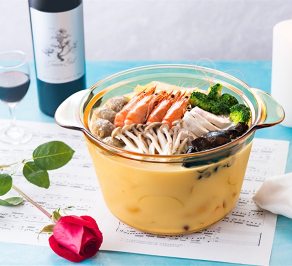 2.将高汤和无糖豆浆以2:3比例倒入Visions3.8L深汤锅内,总量不超过锅身2/3处,加入白味噌和芝士,大火煮沸后转小火煮10分钟。