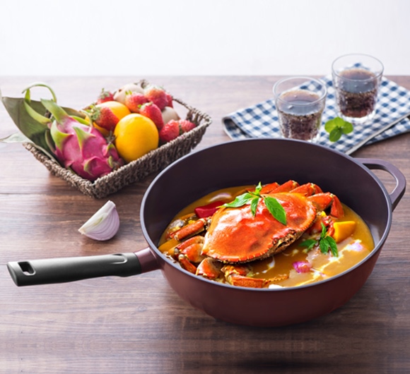 2.宝石红深炒锅加热倒入少许橄榄油,下香茅、洋葱煸炒出香,放入泰式红咖喱炒匀,再加入椰浆、面粉翻匀煮至浓稠状,期间不用担心酱汁烧糊。