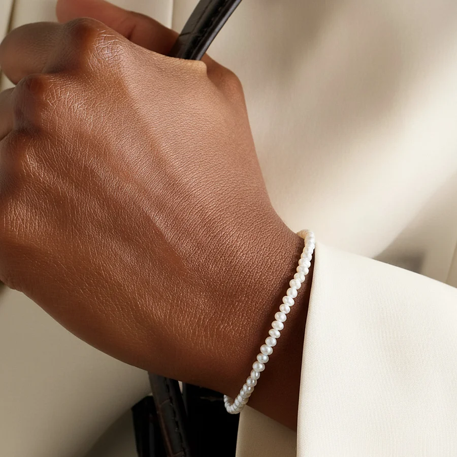 Elevate your jewelry collection with the timeless elegance of the Carrie Pearl Bracelet. This exquisite piece is meticulously handcrafted in NYC, featuring lustrous AA+ quality freshwater pearls that embody sophistication and grace. With tarnish-free stainless steel findings, this bracelet offers both beauty and durability, making it perfect for everyday wear or special occasions.