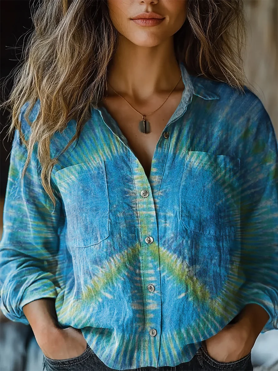 Women's Tie Dye Pattern Printed Women'S Casual Long Sleeve Comfortable Cotton Shirt